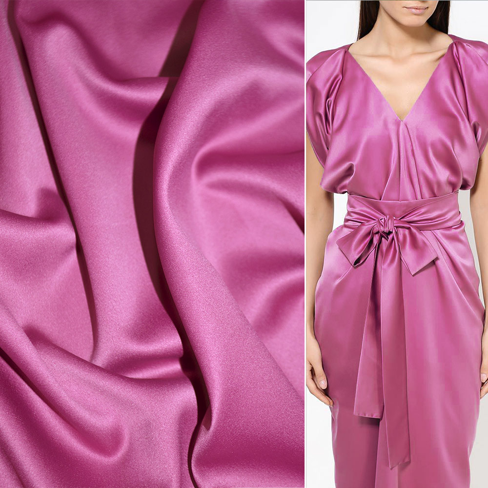 Шовк японський стрейч рожево-ліловий, ш.150. Склад тканини: Поліестер-97, Еластан-3. Щільність тканини 100 г/м.кв. Країна виробник: Південна Корея. Японський шовк на дотик дуже гладкий і м'який, не викликає механічних пошкоджень та ніяких алергічних реакцій. Матеріал ніжно покриває шкіру, підкреслює природні лінії фігури. В інтер'єрі дозволяє створити ошатні акценти, атмосферу свята та наліт аристократизму. Позитивні якості шовку це висока зносостійкість і міцність, збереження естетичного вигляду, гігроскопічність - тканина вбирає воду, формостійкість - не сідає при правильному догляді і не витягується, добре драпірується. Що важливо, не викликає алергію або подразнення шкіри.Дякуємо за ваш вибір.
