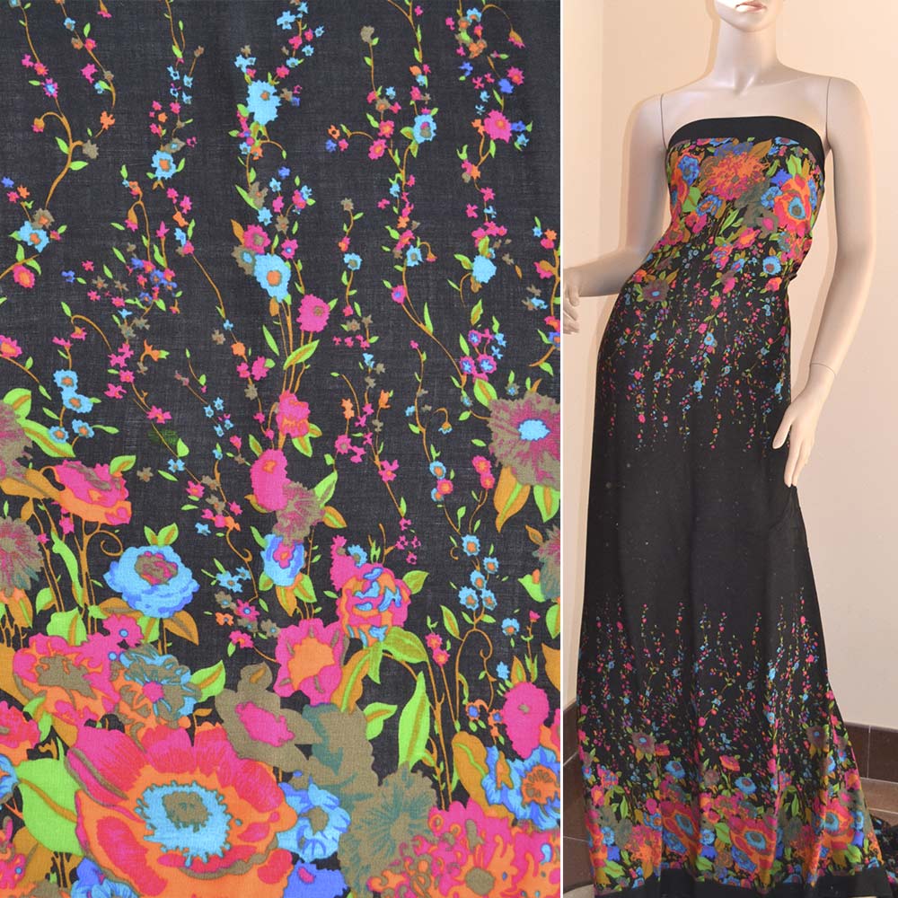 Батист чорний, двосторонній купон малиново-сині квіти ш.140 купить в розницу и оптом