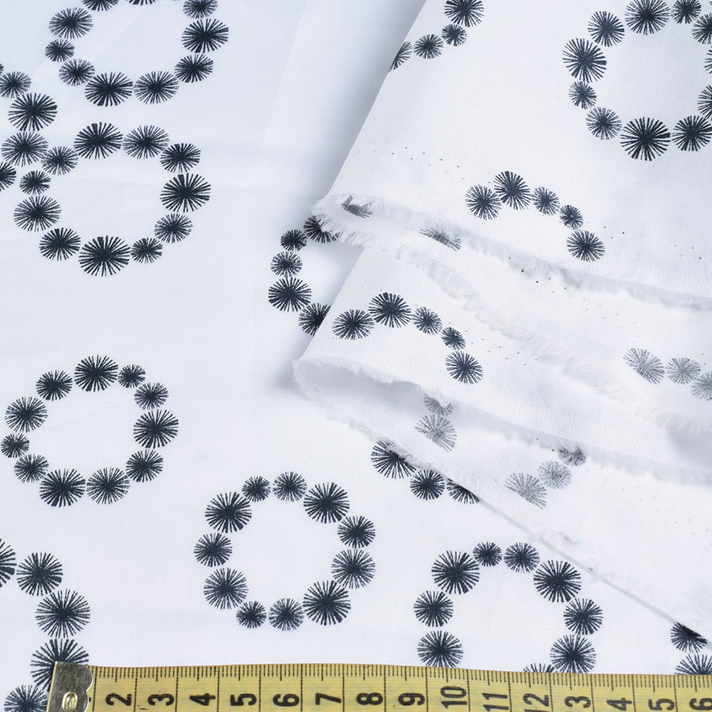 Котон атласний білий в чорні вінки з кульбаб ш.145. Склад тканини: Бавовна-100. Щільність тканини 82 г/м.кв. Країна виробник: Німеччина. Матеріал дуже легкий, що дихає, не дає тілу потіти або мерзнути. Саме завдяки високим гігієнічним властивостям користується великою популярністю. Коттон не вибагливий у догляді, м'який та гіпоалергенний. Завдяки щільності підходить для пошиття літніх костюмів, плаття, штанів та спідниць. Бавовна не електризується, не скрипить, на відміну синтетичних тканин. Використовується для пошиття одягу, постільної та нижньої білизни.Дякуємо за ваш вибір.