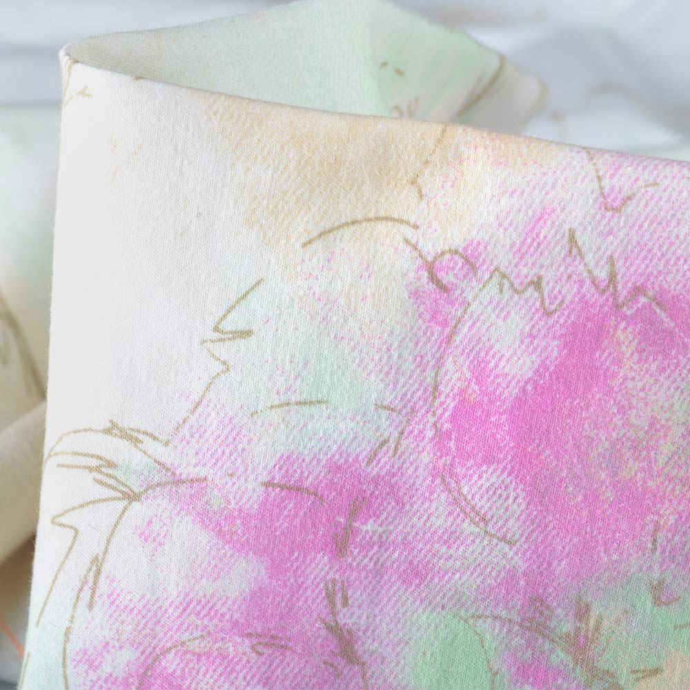 Котон стрейч білий з салатовим відтінком і рожевими квітами. Склад тканини: Бавовна-97, Еластан-3. Щільність тканини 180 г/м.кв. Країна виробник: Німеччина. Коттон - міцний, легкий, м'який матеріал, він легко вбирає вологу, добре пропускає повітря, має високу теплопровідність.