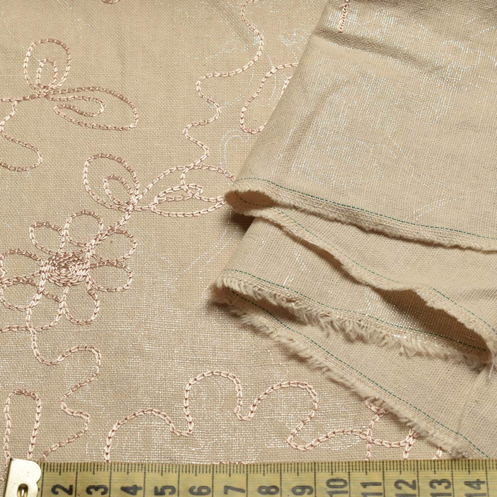 Льон бежевий вишитий, ш.140 купить в розницу и оптом