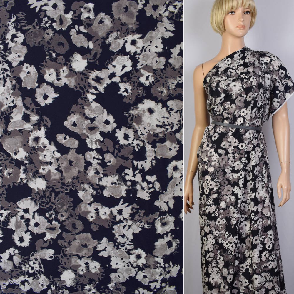 Поплін синьо-чорний в біло-сірі квіти ш.145 купить в розницу и оптом