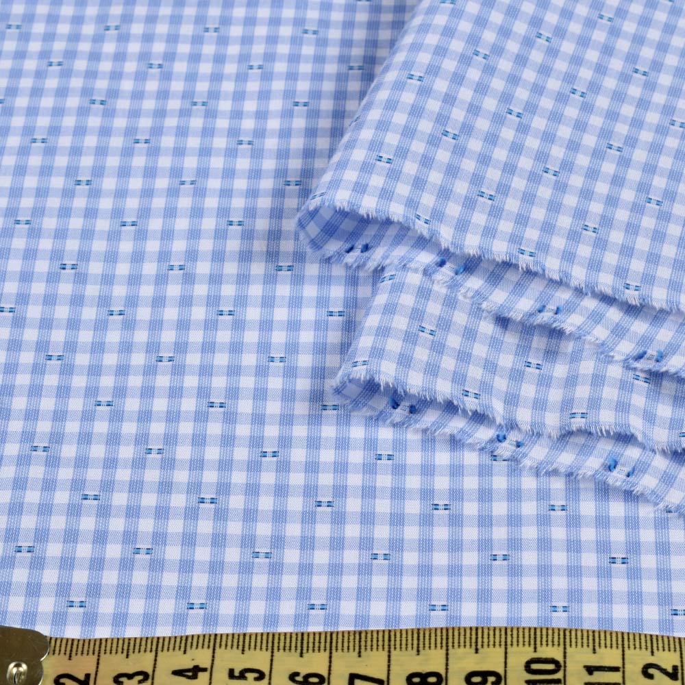 Котон жакардовий білий в блакитну клітину і штрихи ш.147 купить в розницу и оптом