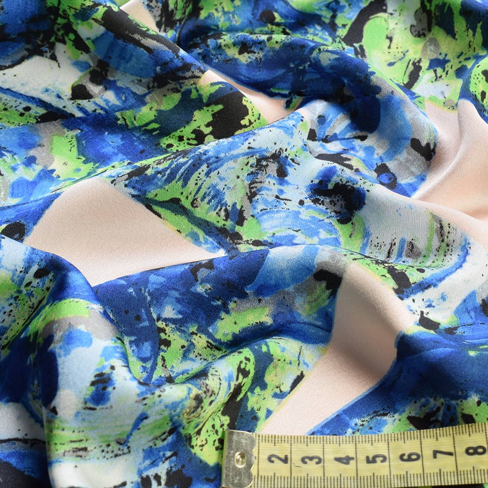 Шовк японський білий в синьо-зелений абстрактний малюнок, ш.150 купить в розницу и оптом