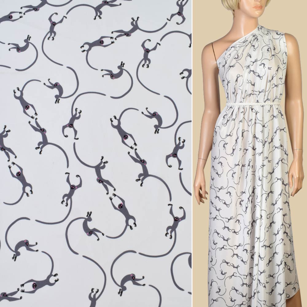 Шовк з поліамідом білий, сірі мавпочки, ш.145 купить в розницу и оптом
