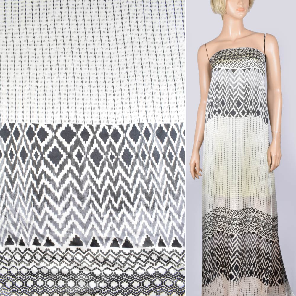 Шовк молочний з чорним геометричним малюнком рапорт ш.134 купить в розницу и оптом