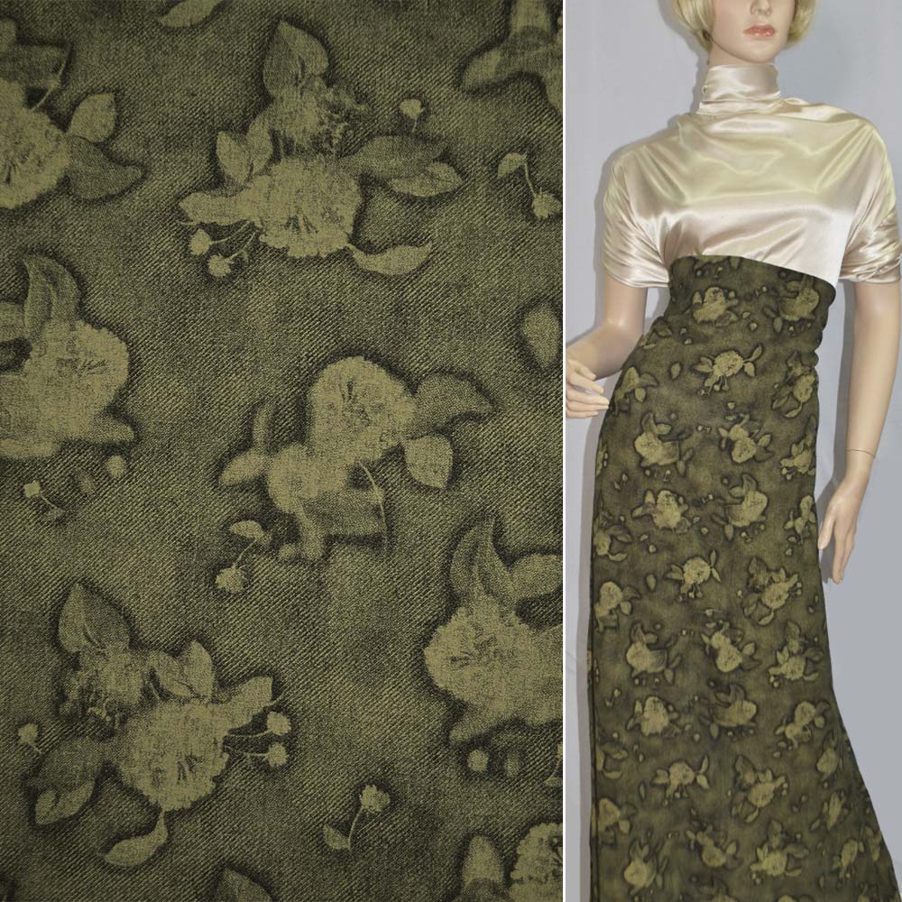 Віскоза блузочна зелена темна в зелені квіти ш.136 купить в розницу и оптом