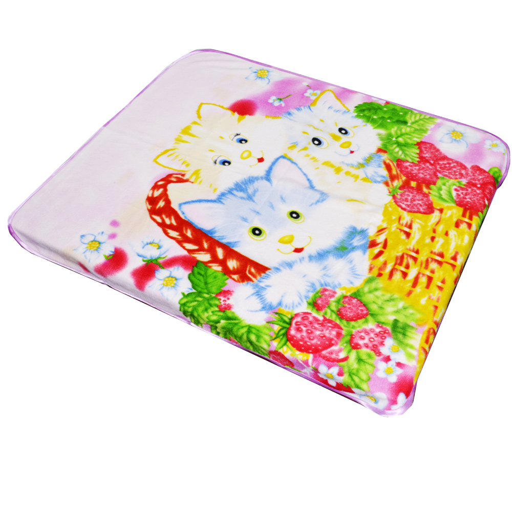 Плед флісовий 106х120 см з кошенятами в кошику блідо-рожевий купить в розницу и оптом