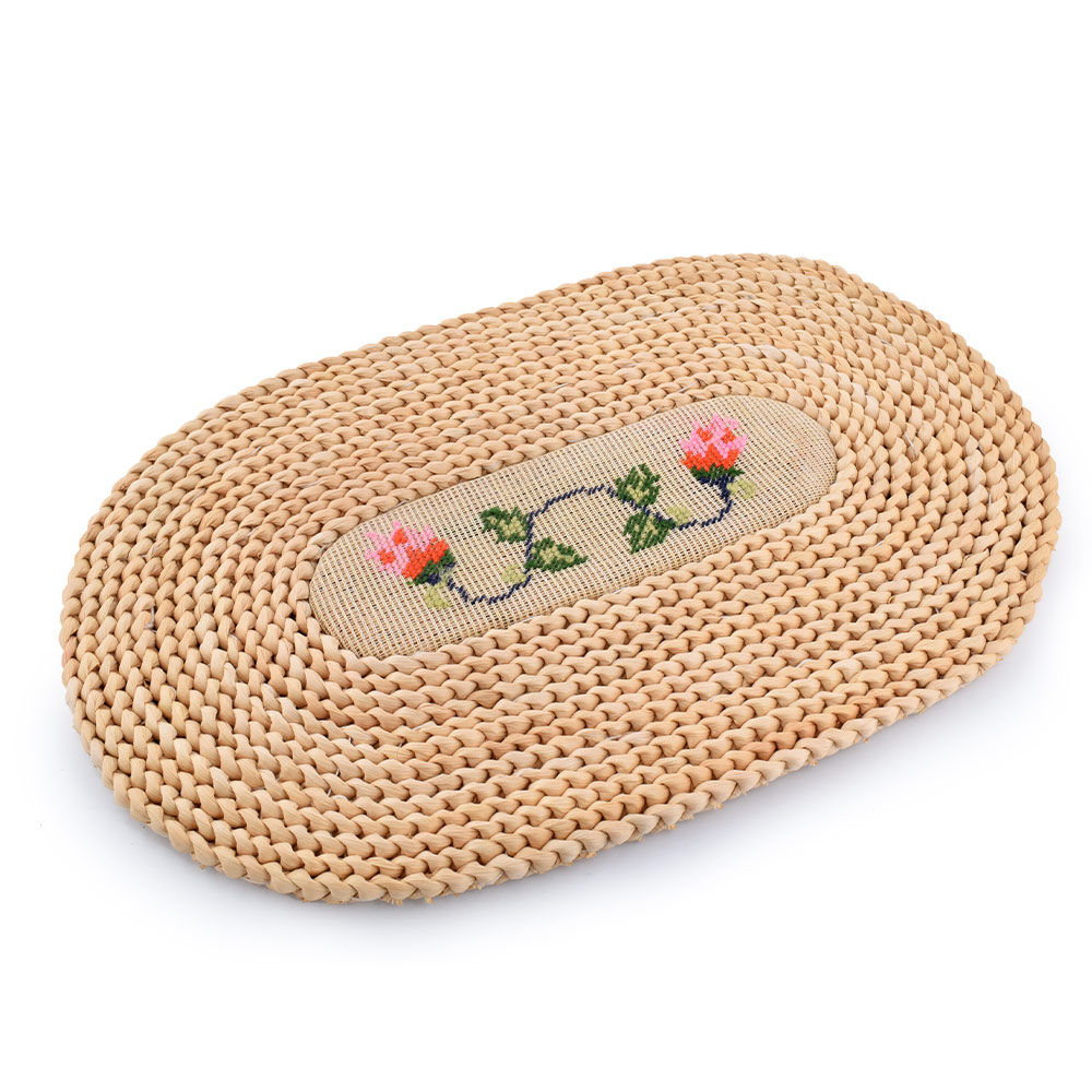 Сервірувальний килимок плетений овальний з вишивкою 2 квіточки 28х44 бежевий купить в розницу и оптом