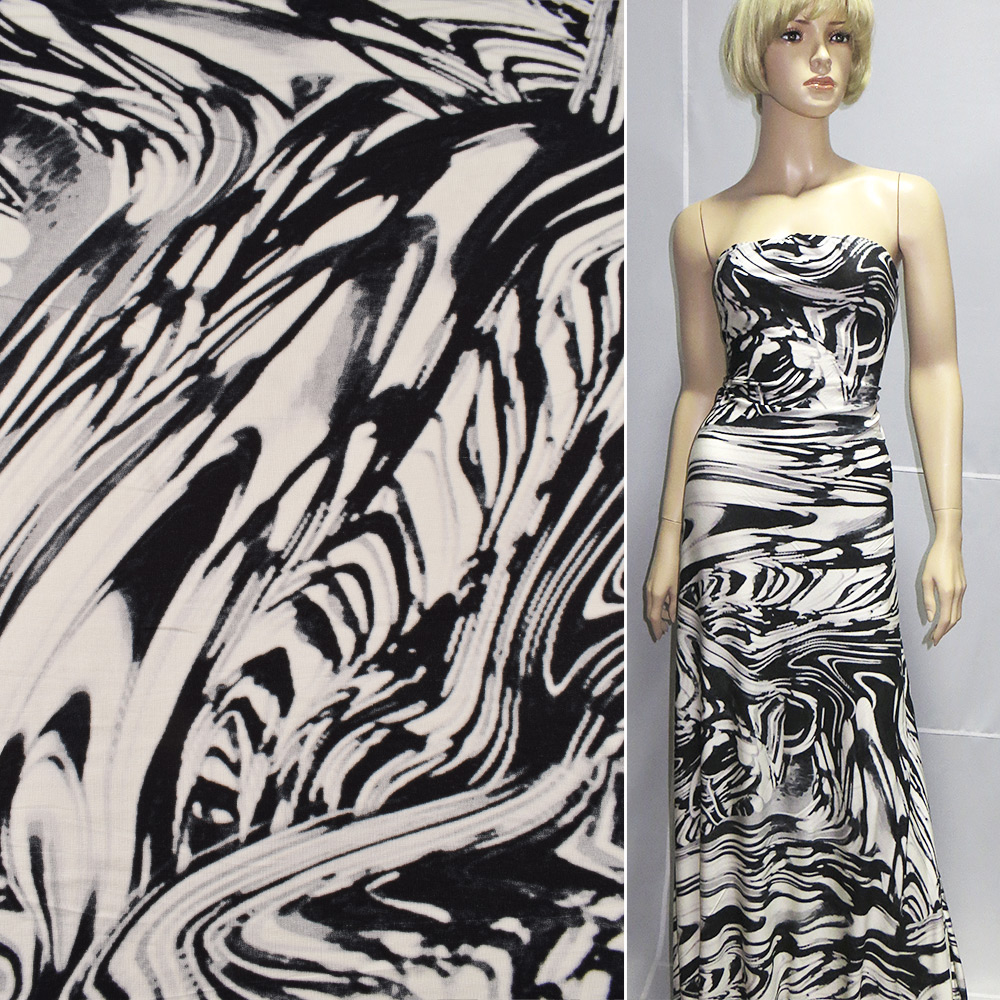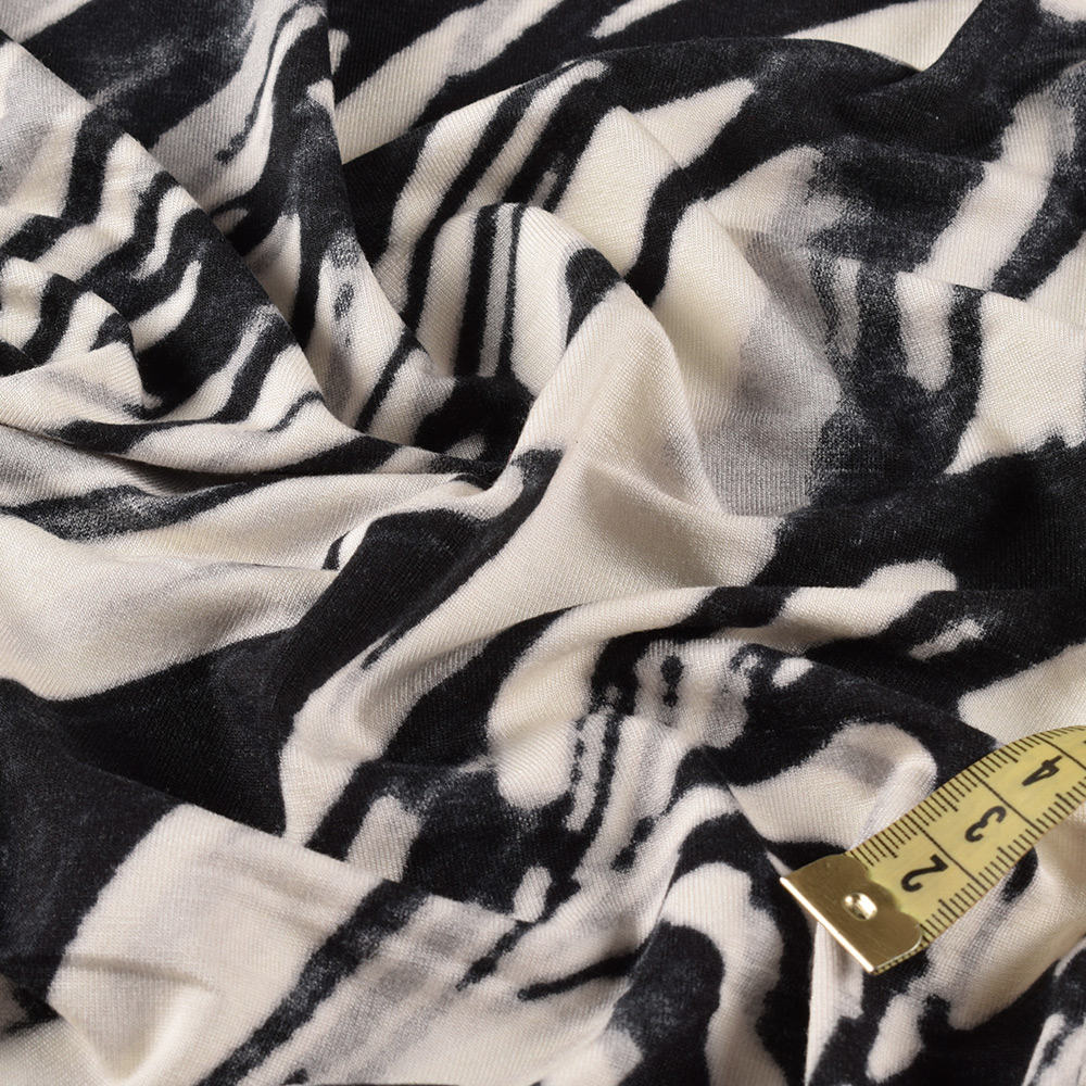 Трикотаж віскозний стрейч білий з чорними розводами ш.150 купить в розницу и оптом