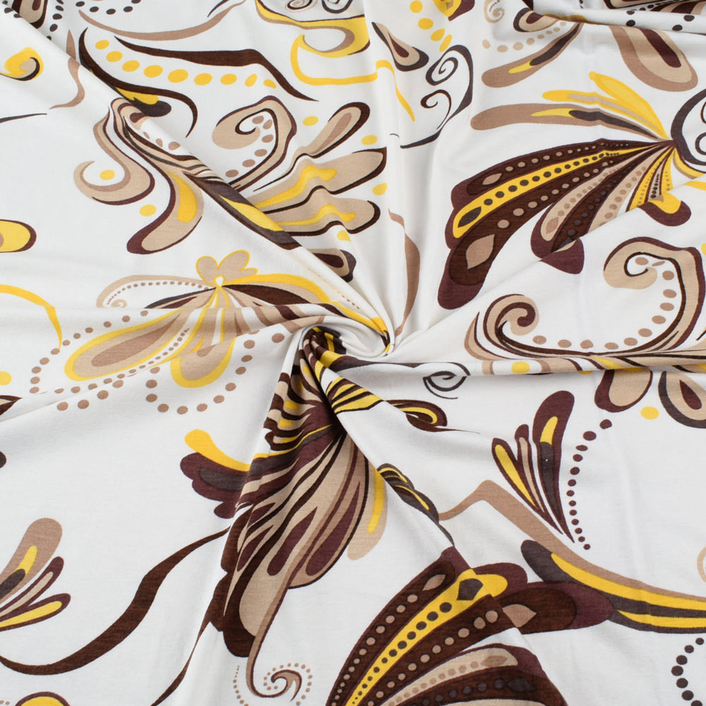 Трикотаж віскозний стрейч білий в коричнево-жовту абстракцію ш.150 купить в розницу и оптом