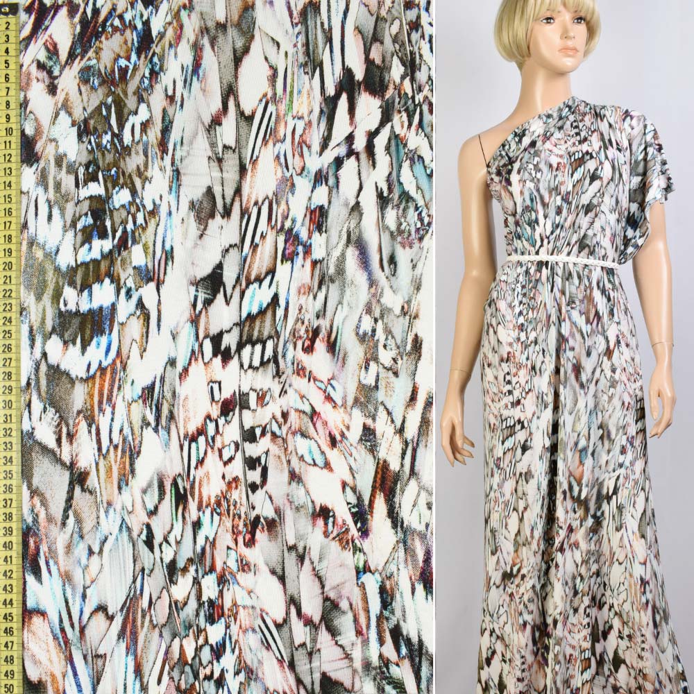 Трикотаж віскозний стрейч білий в різнокольоровий абстрактний малюнок, ш.150 купить в розницу и оптом