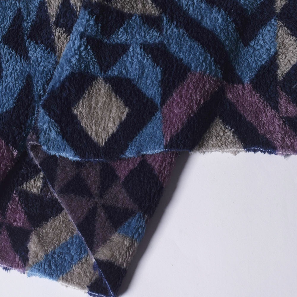 Велсофт-хутро двосторонній синій в різнокольоровий геометричний візерунок, ш.172. Склад тканини: Мікрофібра-100. Щільність тканини 354 г/м.кв. Країна виробник: Південна Корея. Велсофт – це щільне, легке, м'яке трикотажне полотно з ворсом. Велсофт стійкий до механічних пошкоджень, не линяє, не сідає та не розтягується. Є гіпоалергенною, антибактеріальною. Швидко нагрівається і зберігає тепло, має хорошу повітропроникність. З цієї тканини шиють пледи, декоративні подушки, халати, домашні капці та шкарпетки.¶¶Дякуємо за ваш вибір.