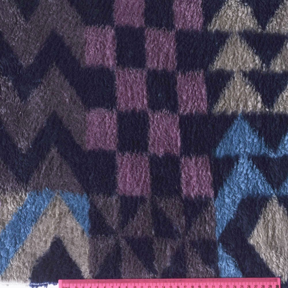Велсофт-хутро двосторонній синій в різнокольоровий геометричний візерунок, ш.172 купить в розницу и оптом