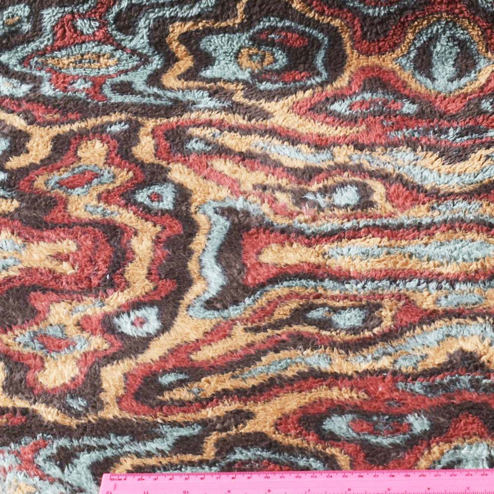 Велсофт-мех двухсторонний орнамент терракотово-зеленый, раппорт 60см, ш.180 купить в розницу и оптом
